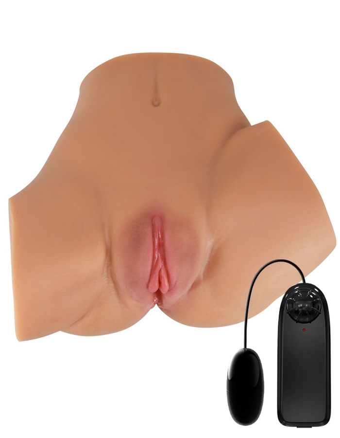 Реалистичной формы вибромастурбатор-полуторс с двумя рабочими отверстиями: вагиной и анусом.